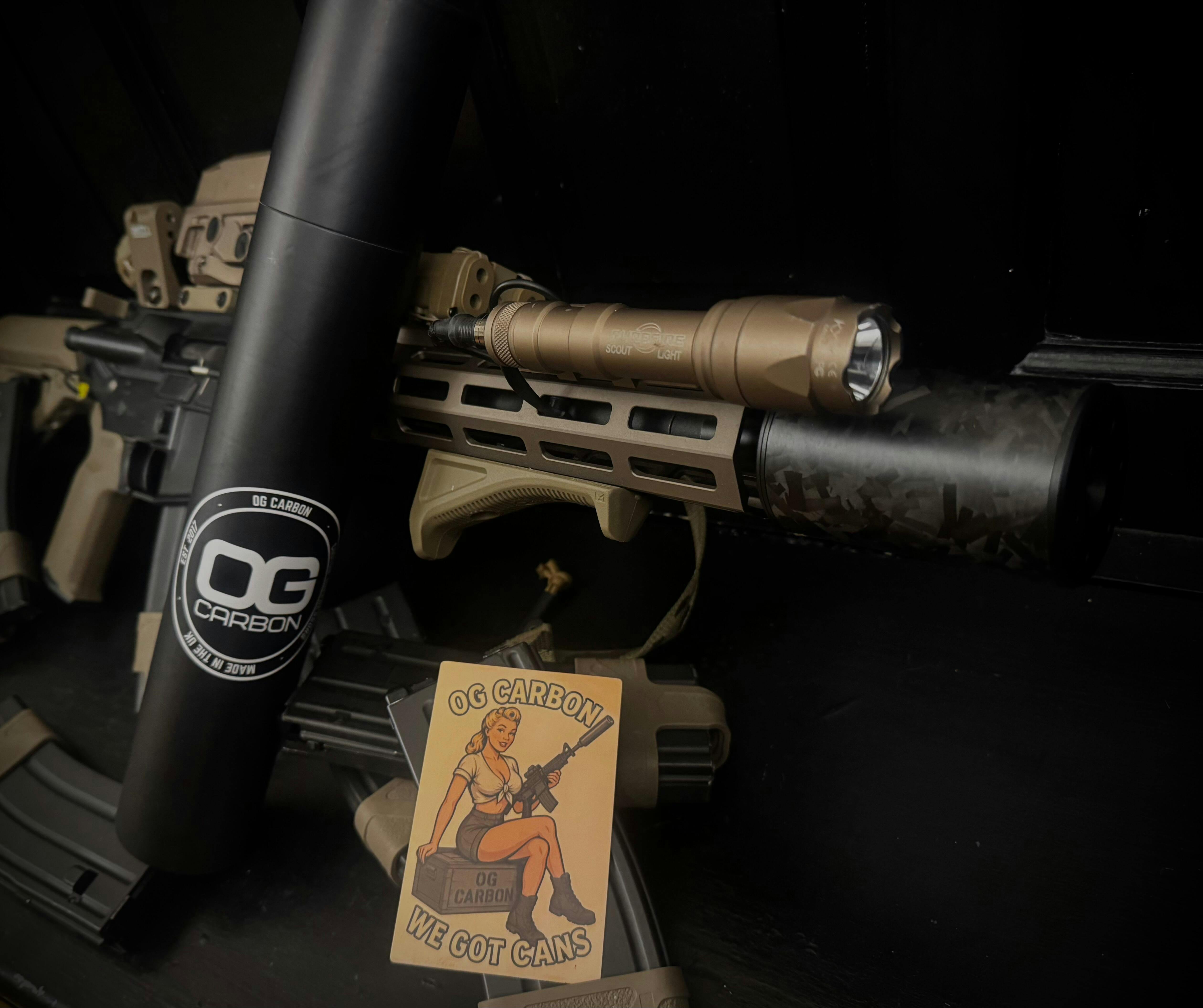 Experience elite performance and precision engineering with OG Carbon’s Forged Carbon Suppressors. Built from roll-wrapped forged carbon fiber and fitted with 7075 aerospace-grade aluminum endcaps, each unit delivers exceptional strength, minimal weight, and a refined, modern aesthetic. Expertly cut foam baffles ensure excellent sound reduction, while the fully serviceable design allows for easy maintenance and customization.